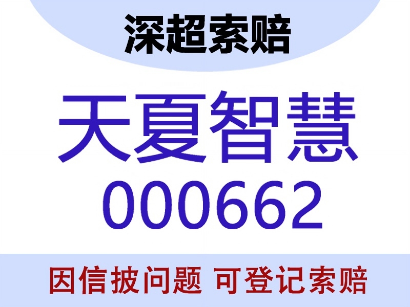 天夏智慧(ST天夏,000662)索赔诉讼时效为2024年12月20日,请投资者尽快完成索赔登记,若不及时主张权利,将错过最佳索赔机会。