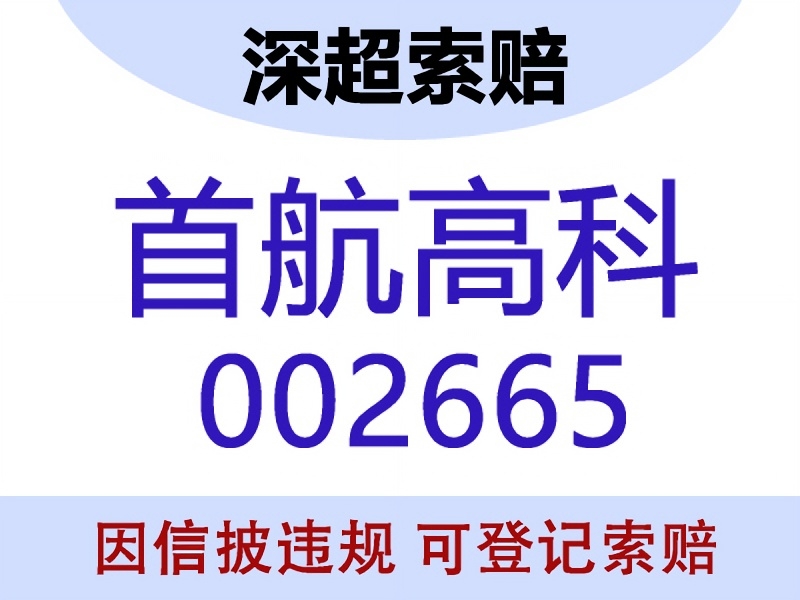首航高科(ST航高,002665)索赔诉讼时效为2026年12月5日,请投资者尽快完成索赔登记,若不及时主张权利,将错过最佳索赔机会。