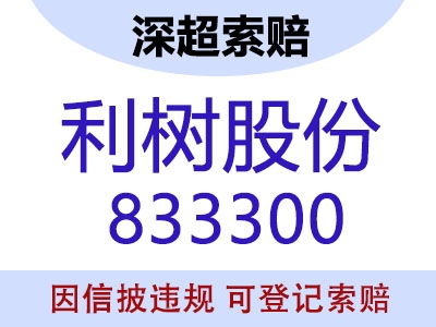 利树股份(833300)股票索赔诉讼时效为2027年4月24日前,请投资者尽快完成索赔登记,若不及时主张权利,将错过最佳索赔机会。